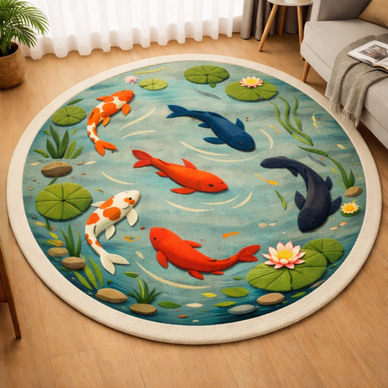 Zen Koi Garden Round Rug