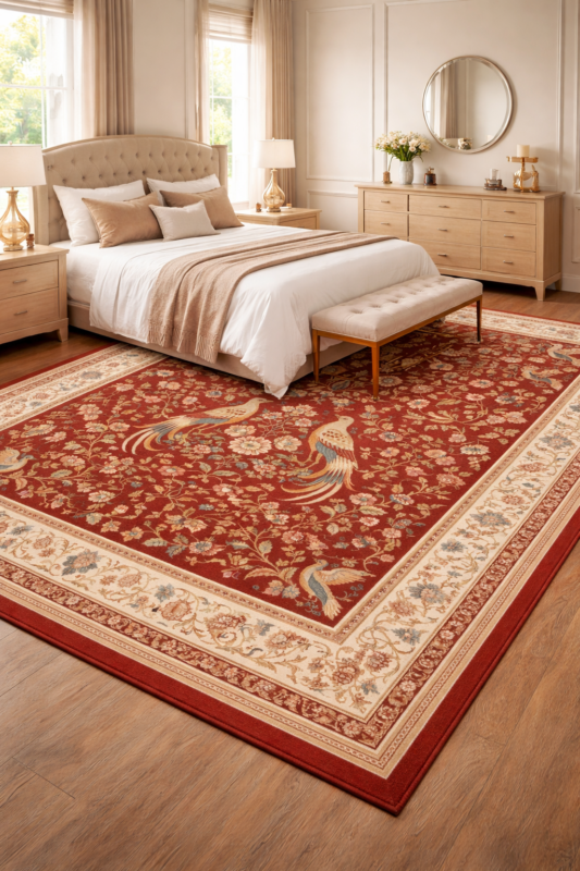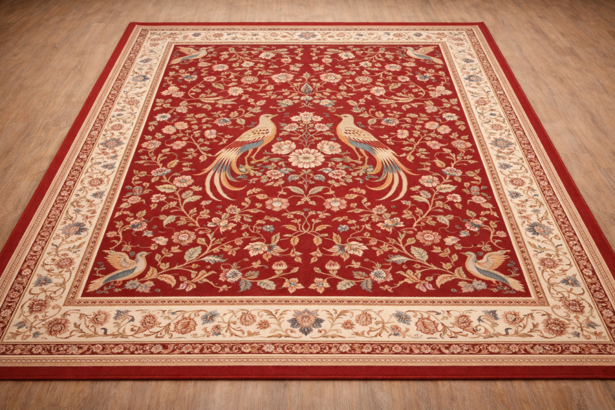 Ruby Bird Royale – Premium Synthetic Bedroom Carpet