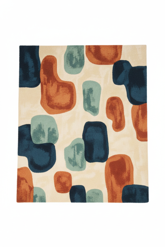 Aria Abstract Pebble Mid-Century Modern Area Rug – Terracotta, Sapphire & Seafoam