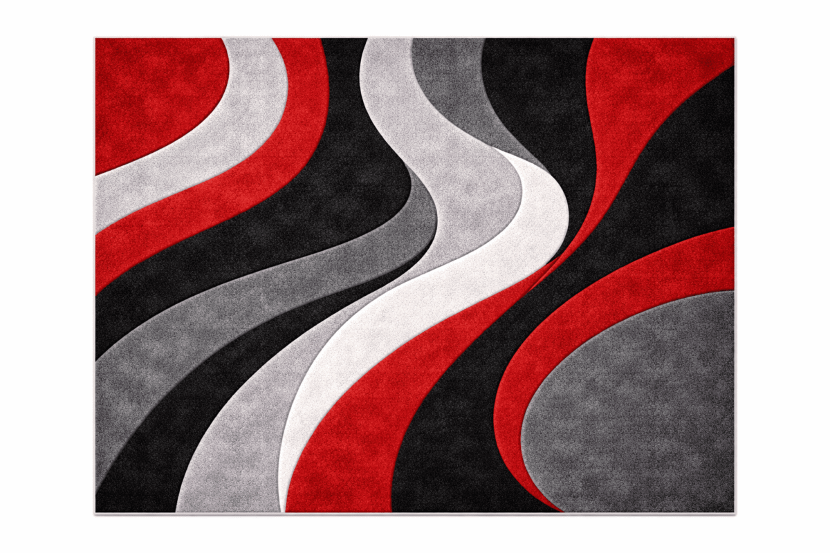 Hand-Tufted 3D Wave Premium Wool Carpet – Bold Red, Black & Grey Contemporary Rug
