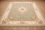 The Royal Bloom Synthetic Area Carpet is designed to bring elegance and comfort to your living space. Featuring a soft pastel green base with a classic floral medallion pattern, this carpet adds a luxurious and timeless touch to any hall or living room. Made from high-quality synthetic fibers, it is durable, easy to maintain, and resistant to daily wear and tear.