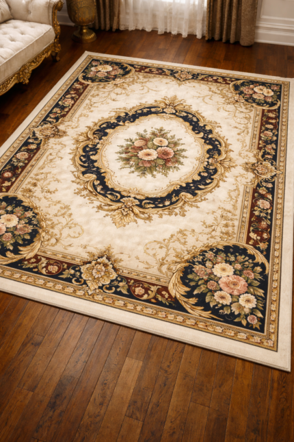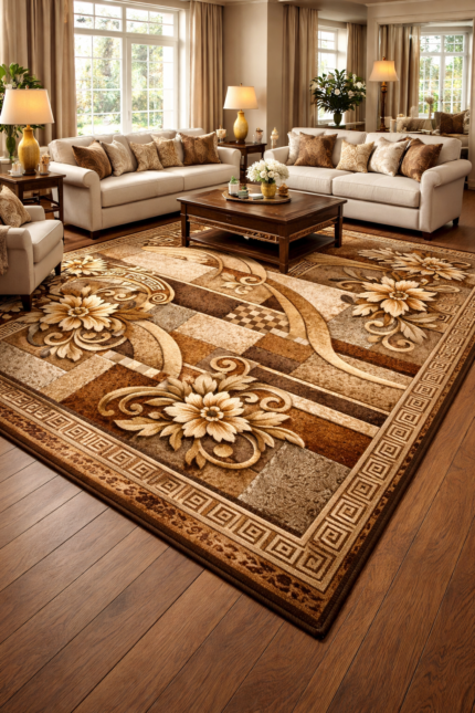 Premium Synthetic Floral Area Rug for Living Room – Large Size, Elegant Design